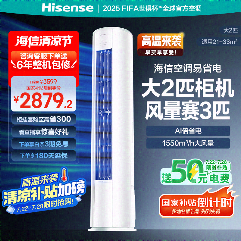 海信2匹易省电柜机空调 京东补贴价2879元
