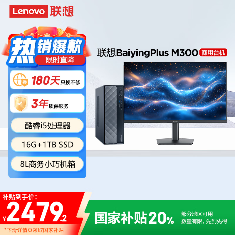 联想Lenovo百应M300台式主机京东优惠价2479元