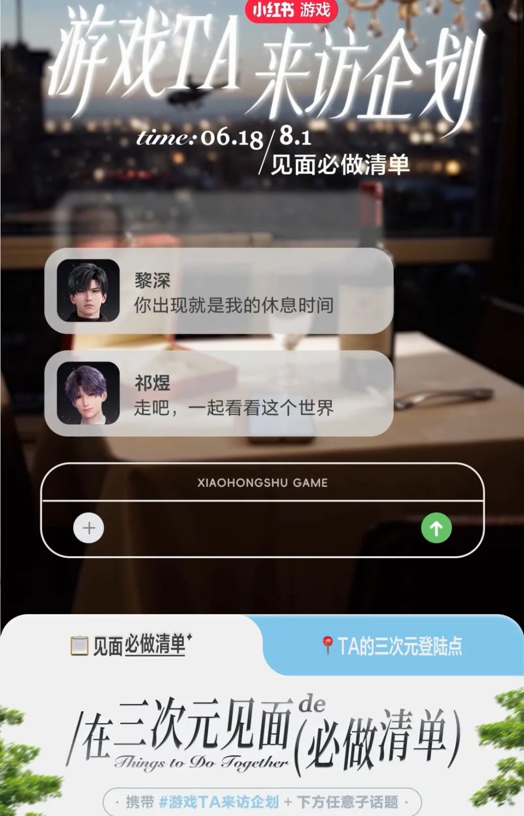 开头提到的场景,正是6月18日小红书推出的“游戏TA来访企划”,联合多家游戏厂商,邀请《恋与深空》《暖暖》系列IP等游戏的角色做客现实世界。
