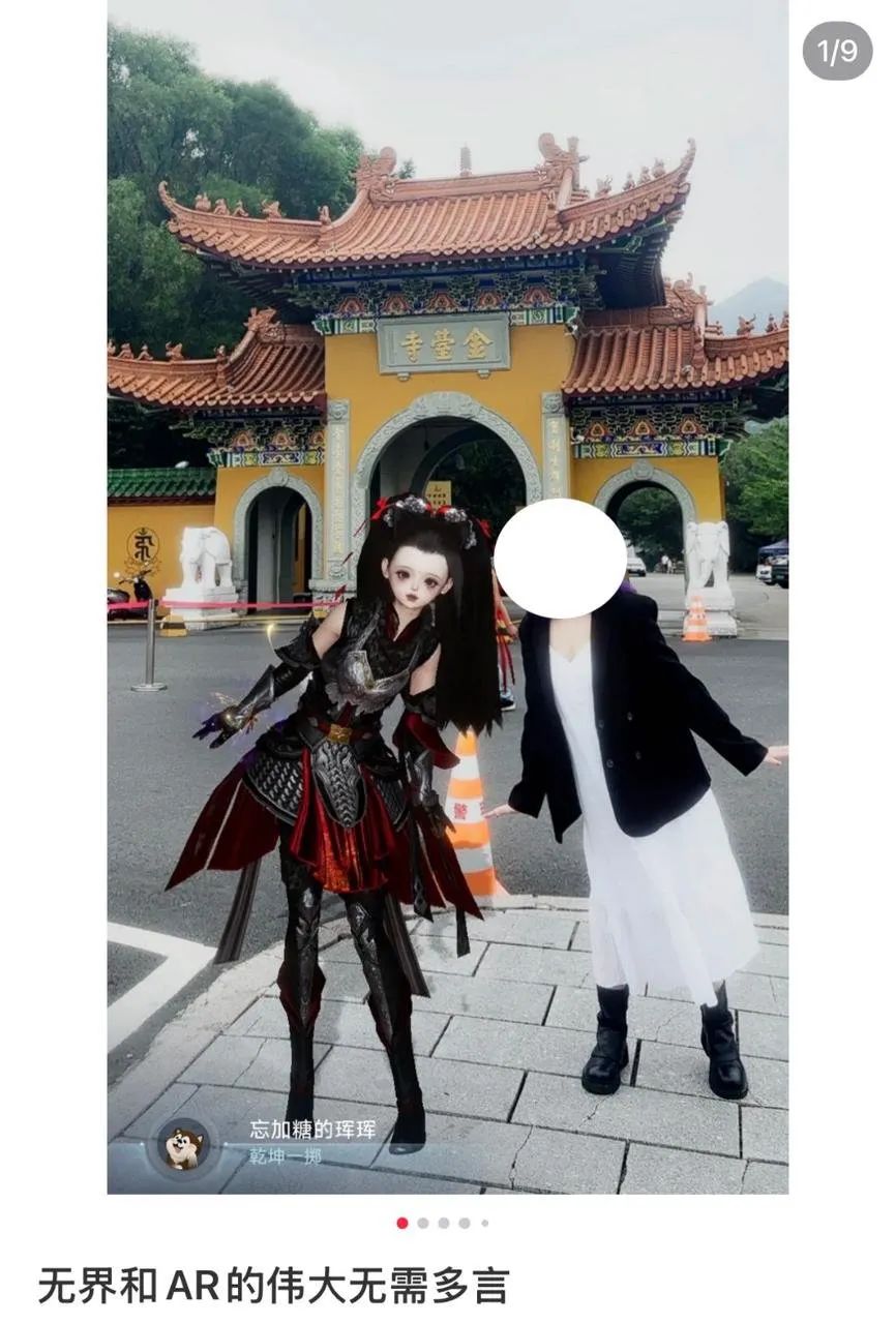 笔记来自@小幽酱还有用户使用AR和剪辑把游戏角色“放”进现实:一会儿坐在地铁窗边陪她通勤,一会儿站在景点旁肩并肩,转眼又出现在咖啡杯冒着热气的对面,好像两条世界线有了重叠一瞬。