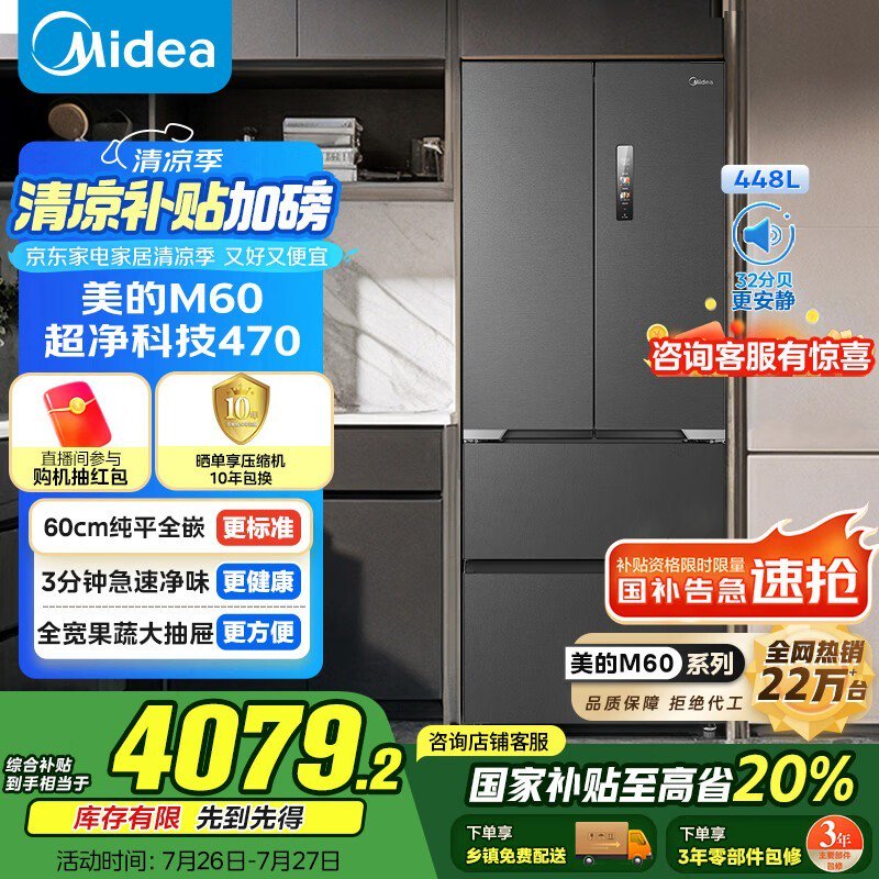 美的M60冰箱448L,plus会员价3744元