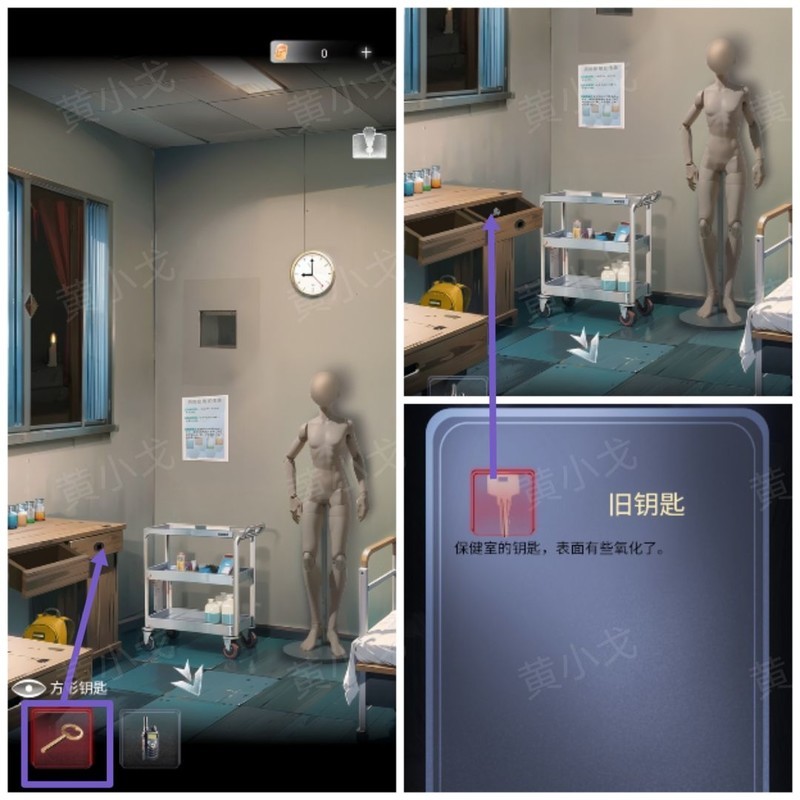 用方形钥匙开启右侧抽屉,取得旧钥匙。