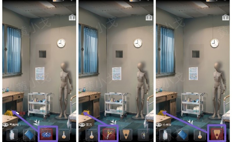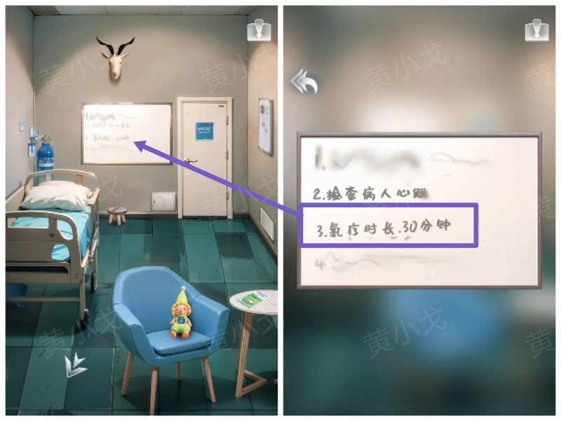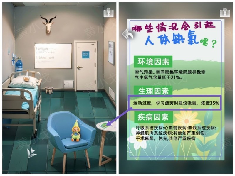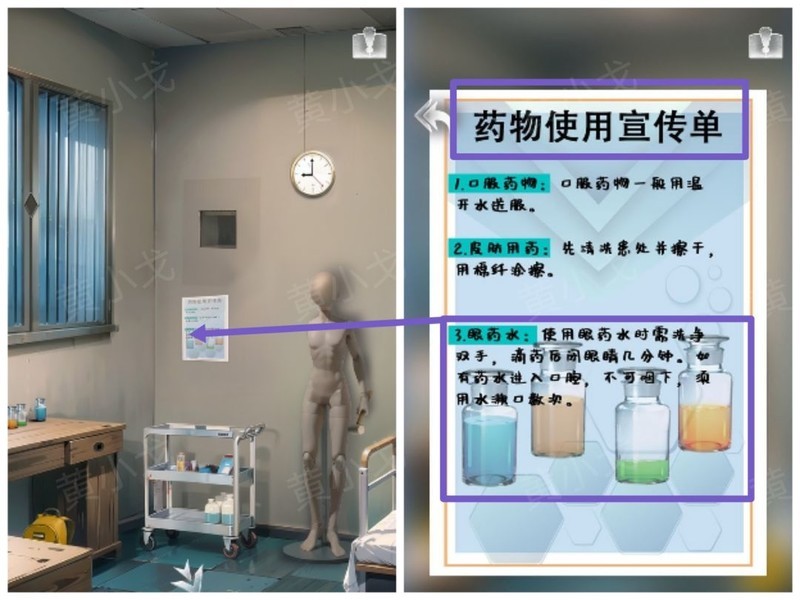 点击桌上的药水瓶,参照药品说明单的提示,将药水瓶正确放置。