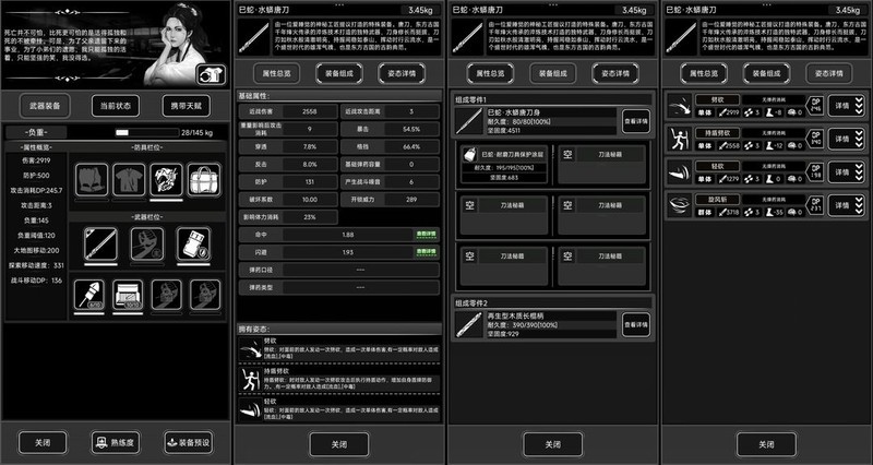 百格挡配合高反击属性,使用再生木将碳刀耐久提升至340,再通过涂层增加到440,攻击时附带流血效果。防具方面建议选择抗晕和防击倒类型。一天大约消耗一把碳刀,材料成本几乎可以忽略不计。多余的5.56子弹和铁板可用于打造四修。若碳刀在战斗中损耗严重,可选择血修方式恢复,每个7血的材料能修复两把。对于熟练度或天赋不足的情况,可携带极开处理血量较高的敌人。游戏内一天的时间约为现实9分钟。