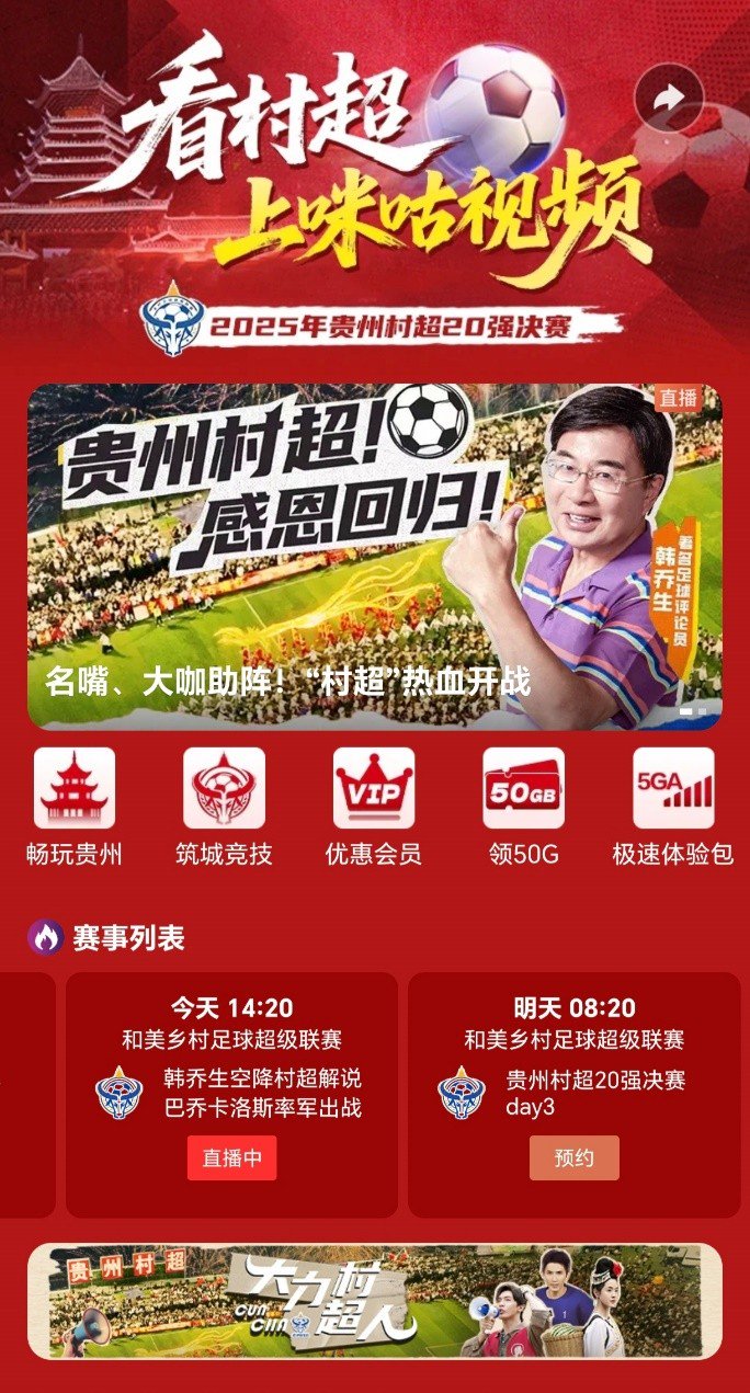 乡村体育发展正当时,中国移动将继续以数智技术赋能“村超”,以文体旅融合绘就乡村振兴新图景。作为赛事转播方,咪咕视频将依托“内容+科技+融合创新”,为观众打造多元沉浸的“村超”观赛新体验。敬请锁定咪咕视频、移动高清,与亿万球迷共赴每一场“超级星期六”足球狂欢!