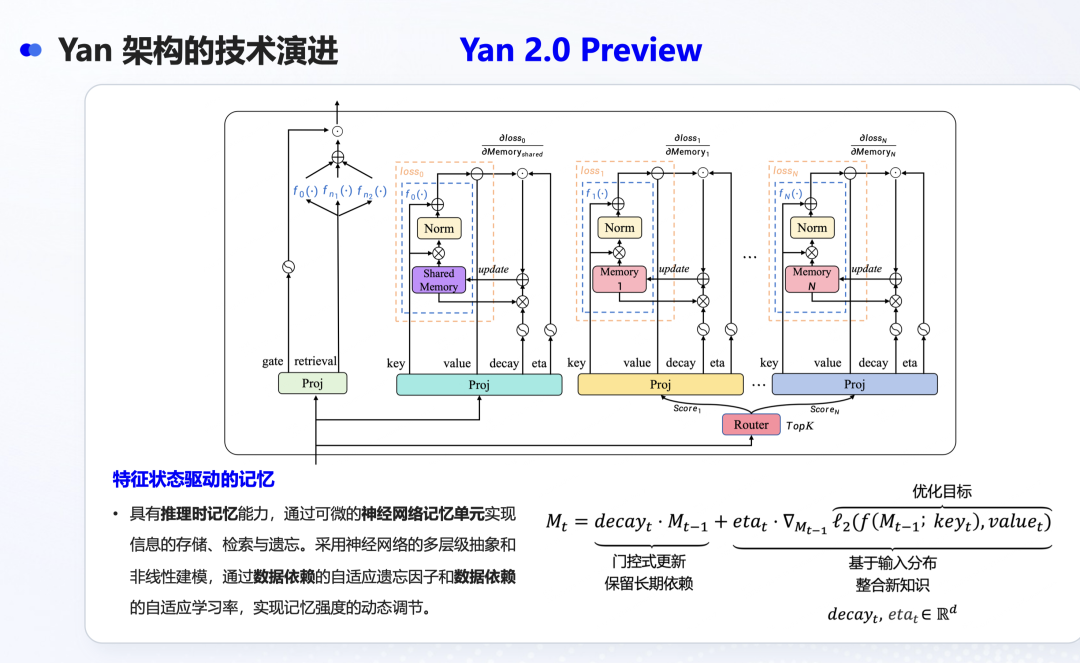 而在今年 WAIC 推出的 Yan 2.0 Preview 仅 30 亿参数,已经能做到多模态,并在本地实现真正的「记忆」:模型可动态调整权重,长期保留并更新用户偏好。