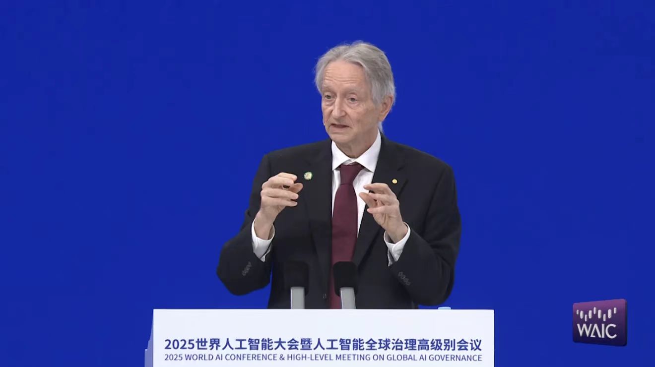 7 月 26 日的开幕活动中,2024 年诺贝尔奖得主杰弗里·辛顿最为 AI 界的宗师,进行了演讲,这位一直坚持「AI 威胁论」的知名学者,再次重申了 AI 无序发展的危险,呼吁全球建立 AI 研究的「安全网络」。