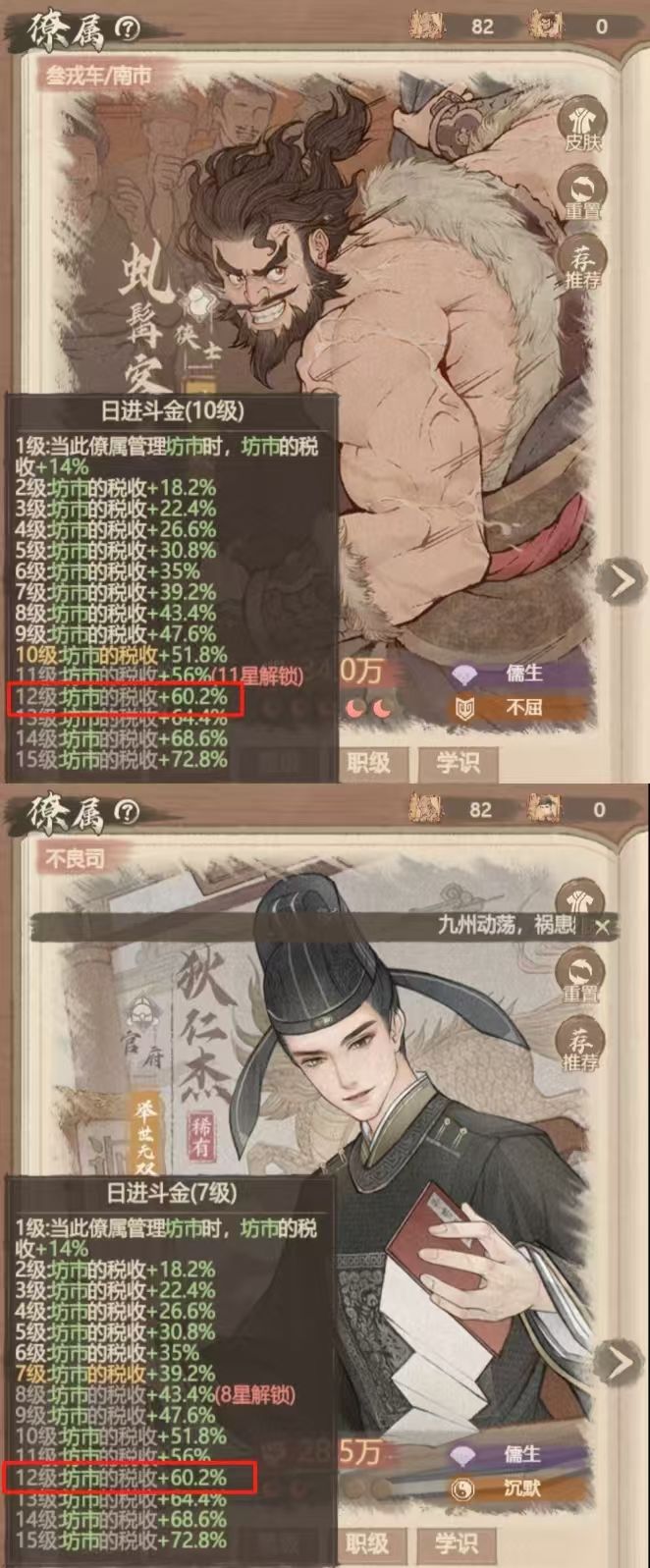 挑选经济与税收能力突出的僚属派往西市,如王昭君、苏显儿、韦香儿和狄仁杰,均为高效工作的首选角色,通过提升星级进一步增强其工作效能。