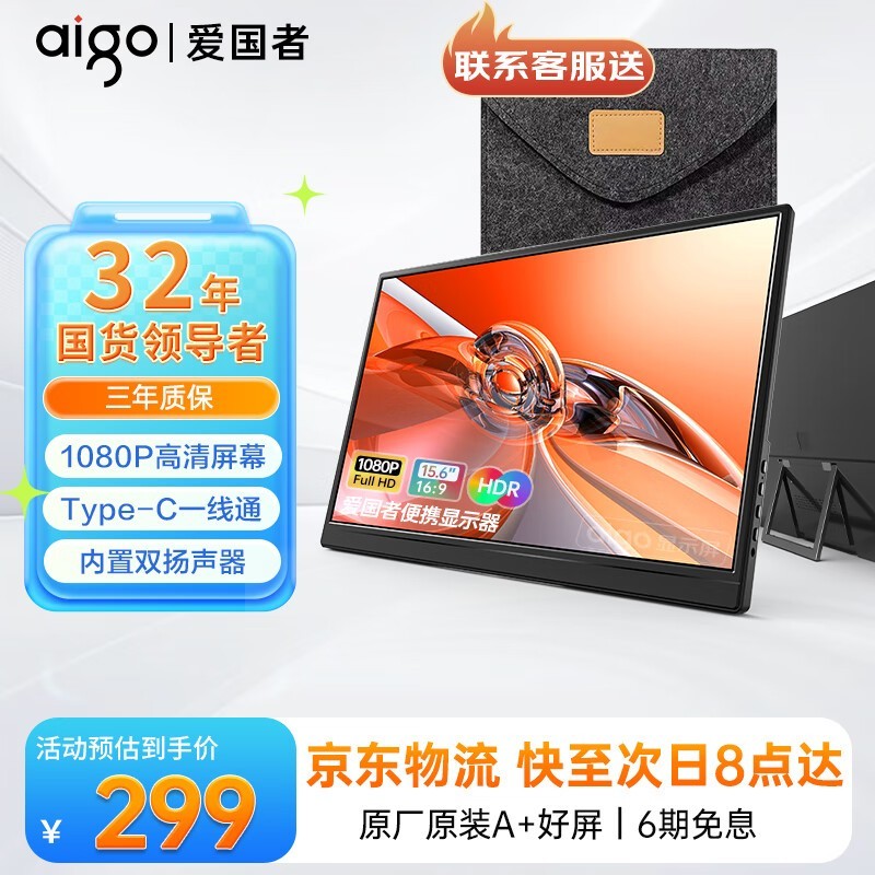 爱国者便携显示器京东优惠,到手263元