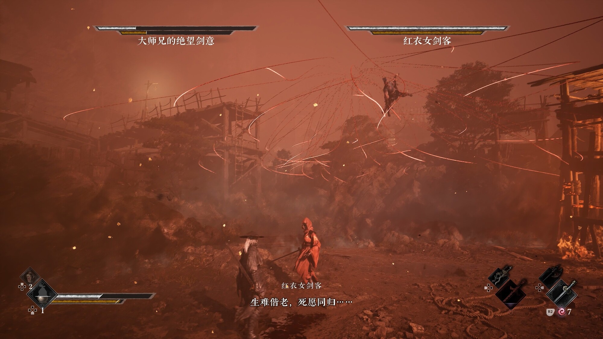 《影之刃零》的整体动作设计十分凌厉肃杀,却又不失想象力——颇有种古龙小说配搭90年代香港武侠电影的奇诡感,而不同种类的武器派生动作与处决动画的“堆料”设计,则让每一场战斗都爽感十足且极具观赏性。
