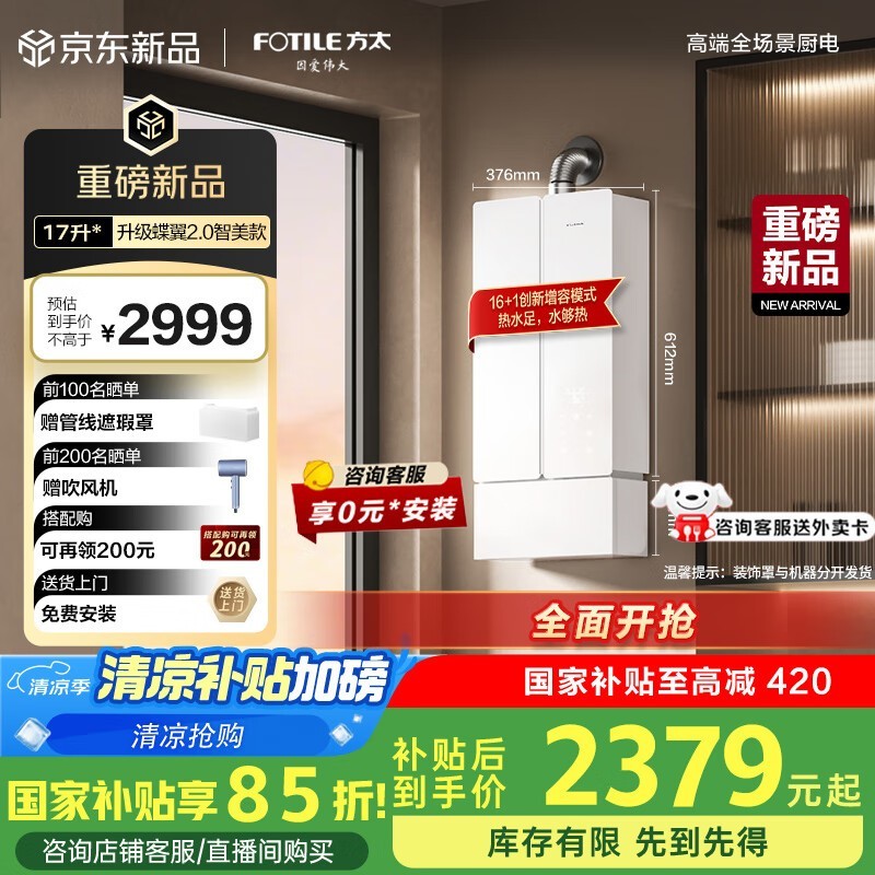 方太16升燃气热水器2379元