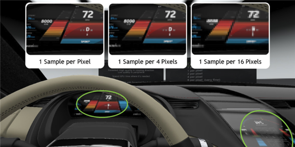 可变速率着色(VRS)示意,从左到右着色率变低