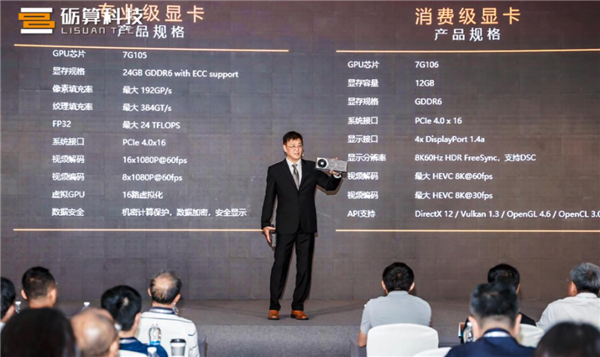 所以真正的上手实测大家还得再等等,但是如果你还好奇昨天的发布会还公布了哪些细节,托尼这里可以带着大家再盘一下这两款国产自研显卡昨天公开的信息。