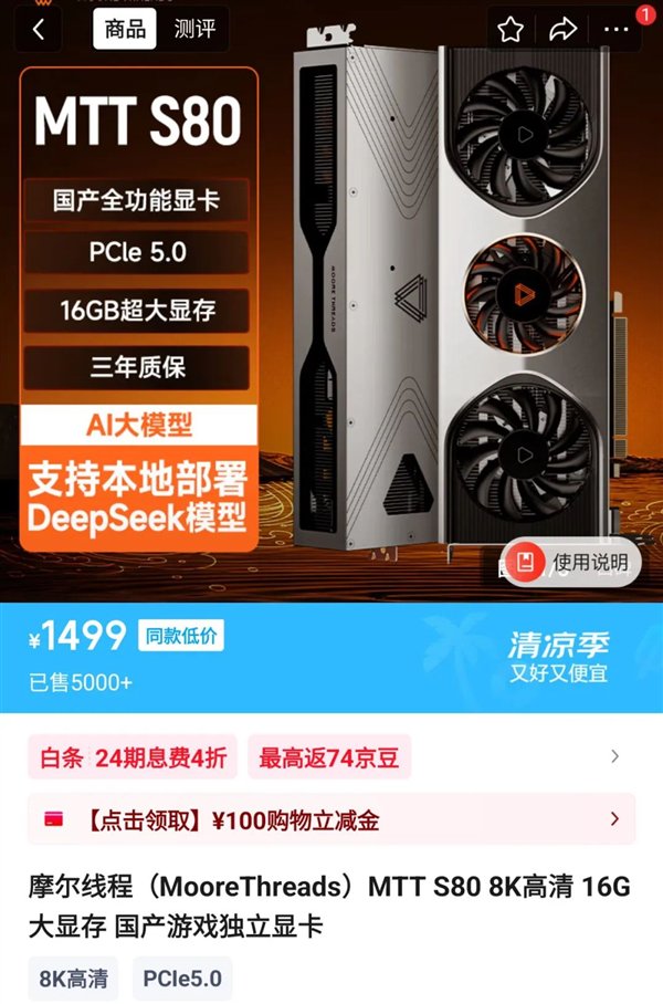 一开始大家也吐槽摩尔线程的 S80 显卡很多游戏都玩不了,缺乏优化,但是后来它就降价了,有一阵的优惠价格甚至掉到了 1000 块钱左右,之后各路评论区对摩尔线程的评价一下子就反转了,变成了 “只有中国人真心对中国人好”。。。
