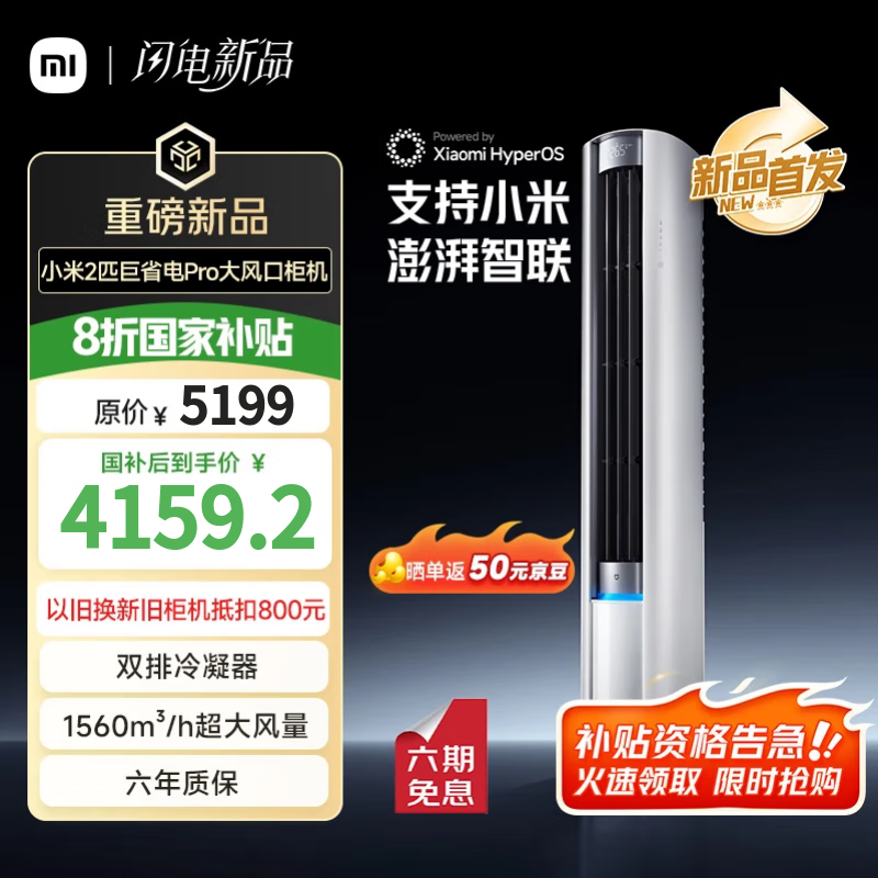 米家2匹立式空调直降1039元