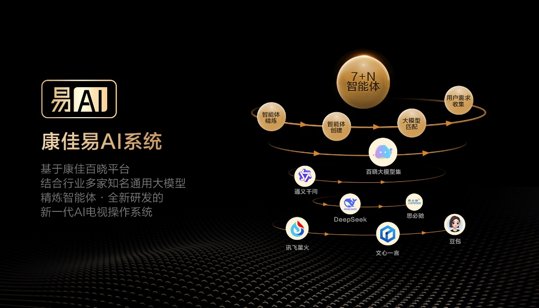 显而易见的是,早在行业沉迷于屏幕尺寸和色彩参数的内卷时,康佳已悄然布局两条关键赛道:一是自建AI基础设施——百晓大模型平台以“端云协同”架构支撑千万级设备,甚至自投服务器与算力中心,避免在第三方算力卡脖子上受制于人;二是开放兼容的生态野心,率先引入DeepSeek的深度推理能力、通义千问的多模态交互技术,将电视从“显示终端”进化为“家庭AI枢纽”。这种“自制+外联”的双轨策略,让康佳在AI赛道上既保有核心话语权,又不失敏捷性。
