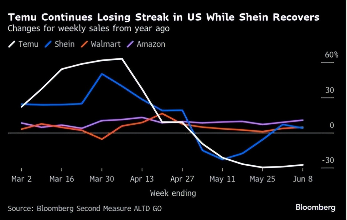 “背水一战”的Temu,或许是对此次年中大促寄望最重的一方。“解放日关税”风波后,其在美区连连败退,深陷流量蒸发的窘境。Sensor Tower数据显示,5月份其日活暴跌58%、月活骤降51%,几近腰斩;在美销售额也同比下跌近30%。说Temu试图借助年中大促这一关键支点逆转颓势并不为过。