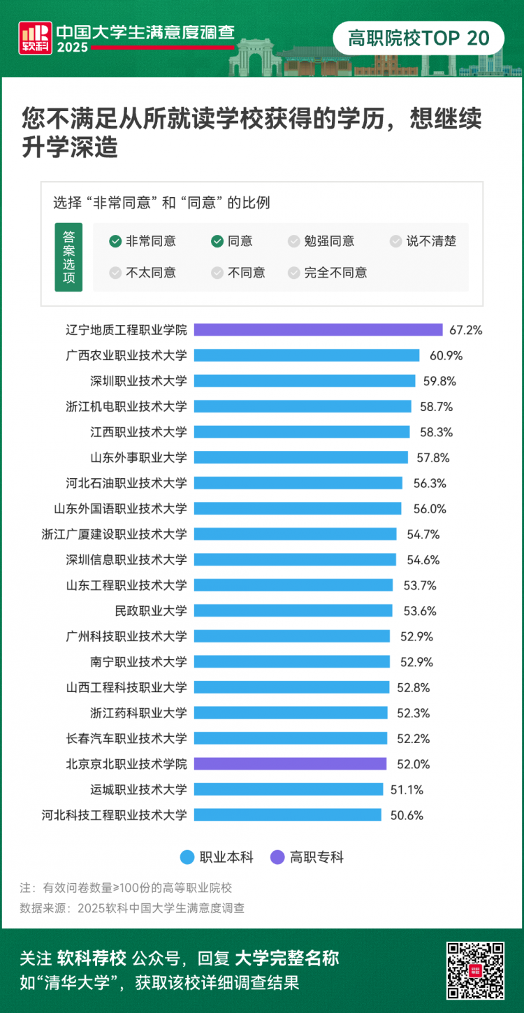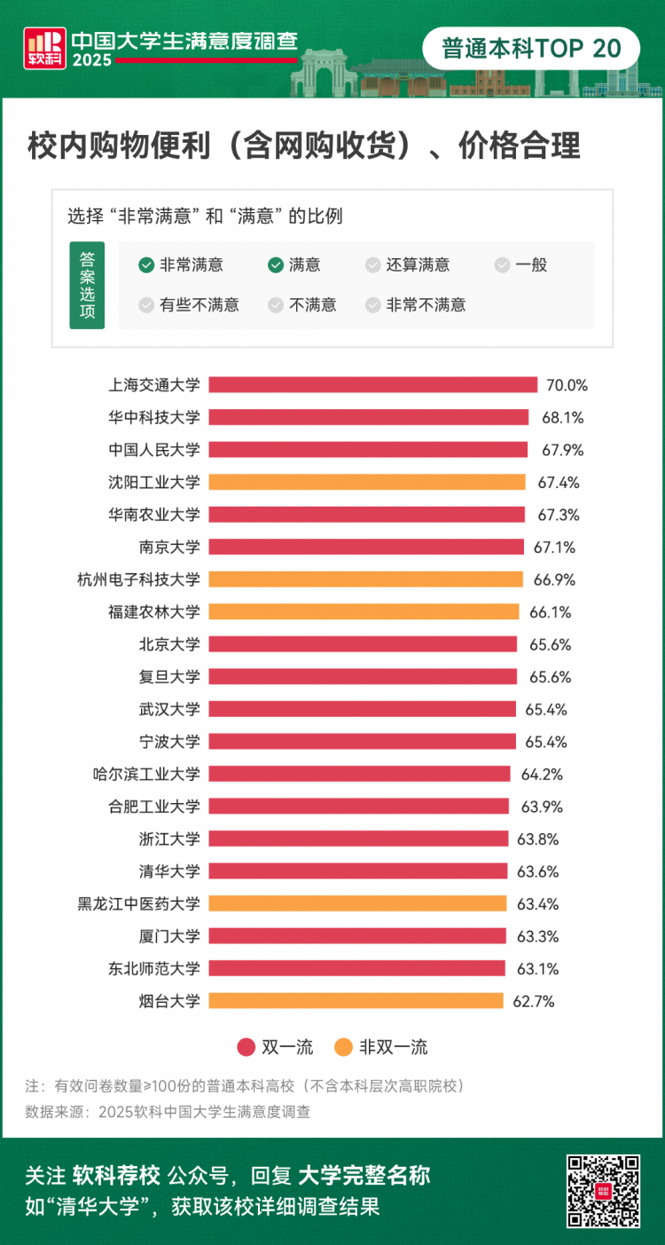 2025软科中国大学生满意度调查结果发布的同时,软科调查小程序已进入开放答题阶段,欢迎大家继续为母校投票,答题可获礼品。