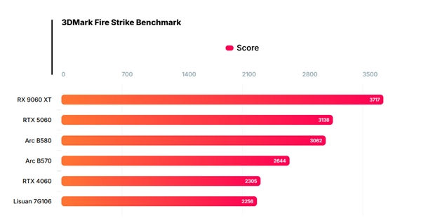 在性能方面,7G106再次进行了合成基准测试演示。除了Geekbench OpenCL外,还展示了3DMark Firestrike测试成绩:26800分,与RTX 4060表现相当。