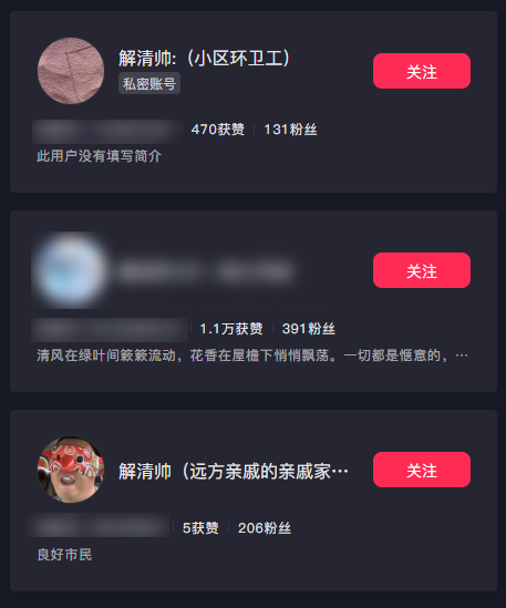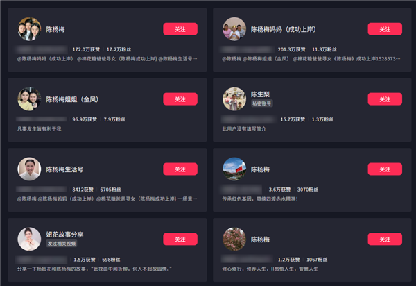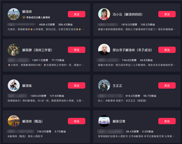 结果搜完发现,从爸爸到妈妈,姐姐到爷爷全都有账号。怎么一人走丢,全家开号。