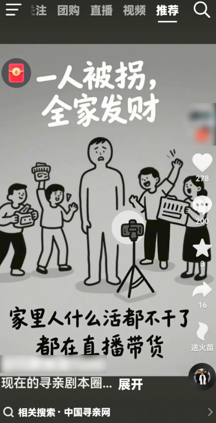 带货视频里也挂着# 寻亲 #标签