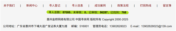 这个 2000 年就注册成立的网站,到现在已经收集了全国 57055 条走失人的信息。