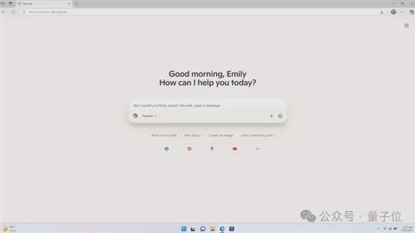 启用Copilot模式后,Edge的新标签页完全变了样,只用中间一个简洁的统一输入框,就像ChatGPT的对话界面。