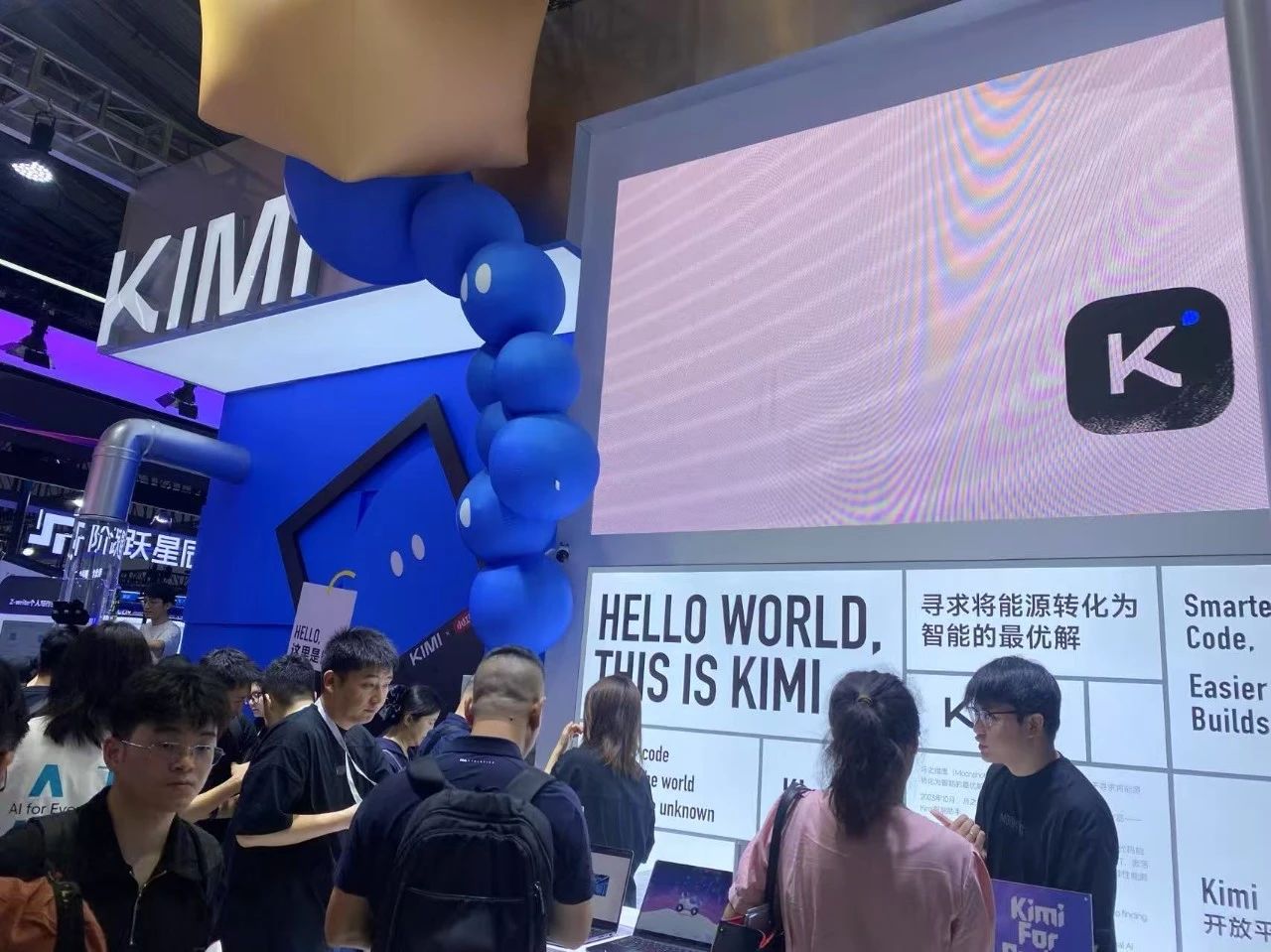 相较而言,大模型公司则低调很多。百川智能和零一万物都没有参加这次大会;MiniMax和智谱除了设展台,没有新品发布或产品进度更新;月之暗面则与另一家公司共用展位——只占据了整个展台的一个侧面;只有阶跃星辰在展会期间推出了新一代多模态模型Step 3。