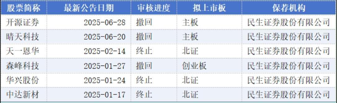 民生证券项目企业包括开源证券、晴天科技、天一恩华、森峰科技、华兴股份、中达新材。