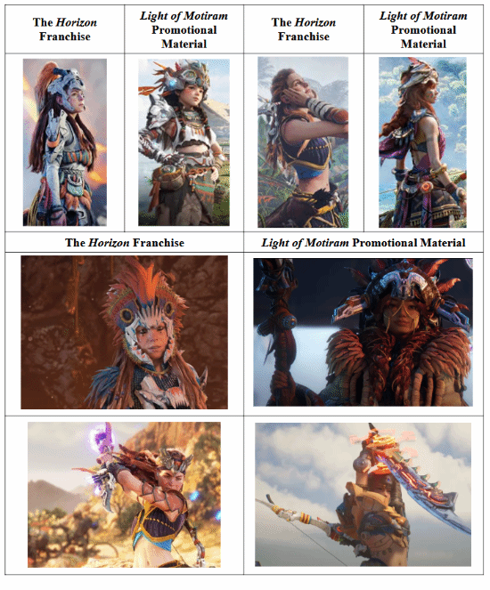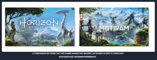 索尼在诉状中写道:“《荒野起源》预告片和其他宣传材料中呈现出的与《地平线》相同的地方,不仅包括故事和玩法主题、文化与角色设定,还包括美术风格、环境景观、建筑与艺术元素、配色方案、字体和符号,甚至光影效果和镜头视角都高度相似。”