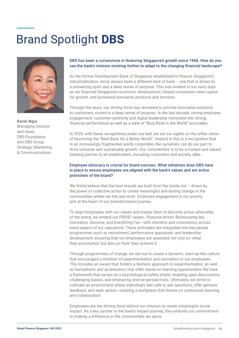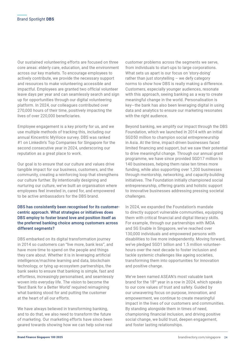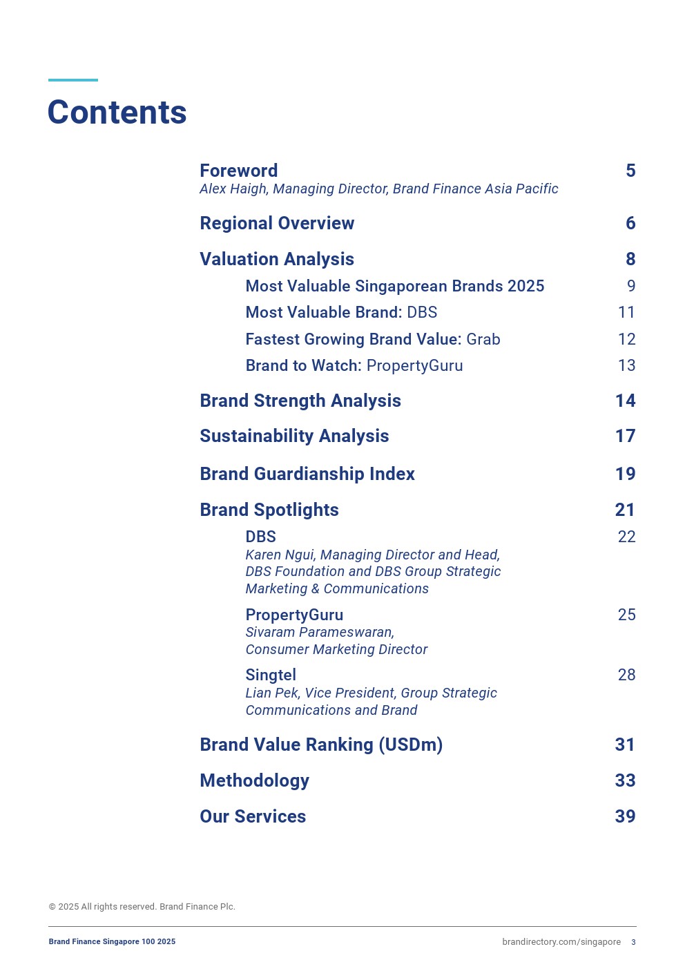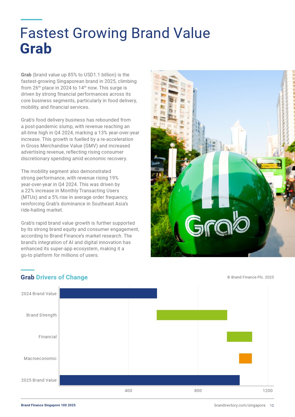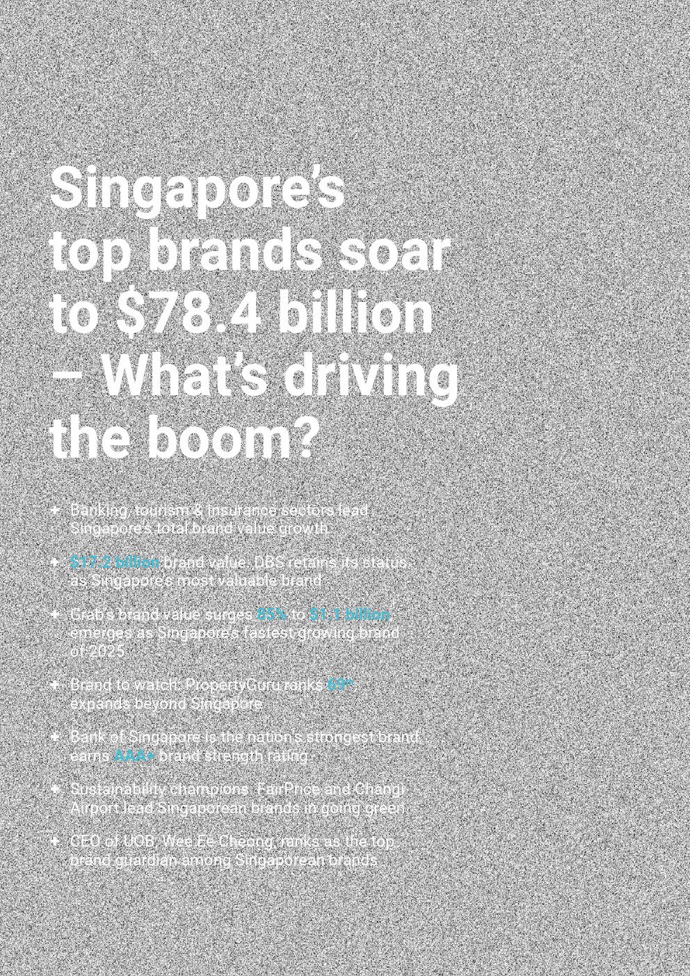 DBS银行(品牌价值增长56%,达到172亿美元)连续第13年保持新加坡最具价值品牌地位,同时维持其AAA级品牌强度评级。