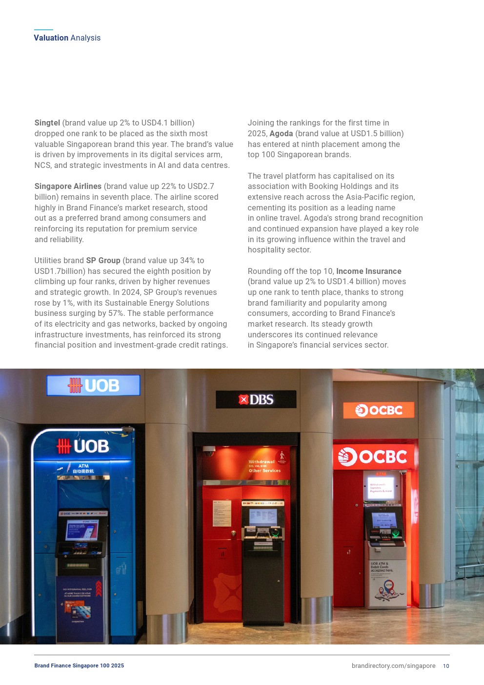 华侨银行(OCBC Bank,品牌价值增长28%,达到64亿美元)跃居第二位,在全国排名中上升两个名次。