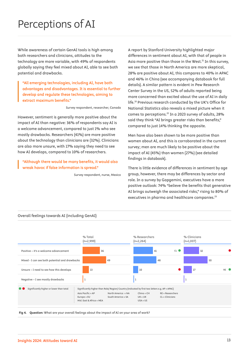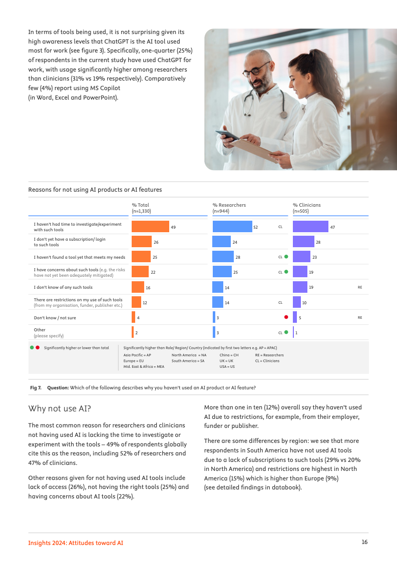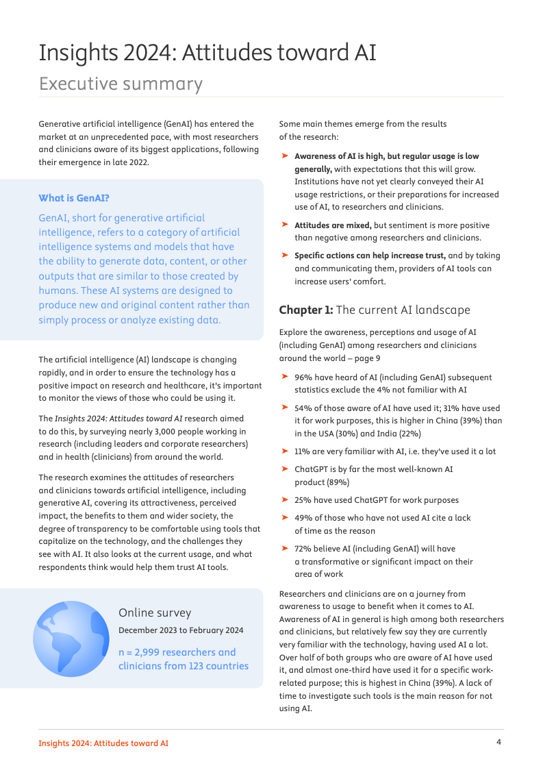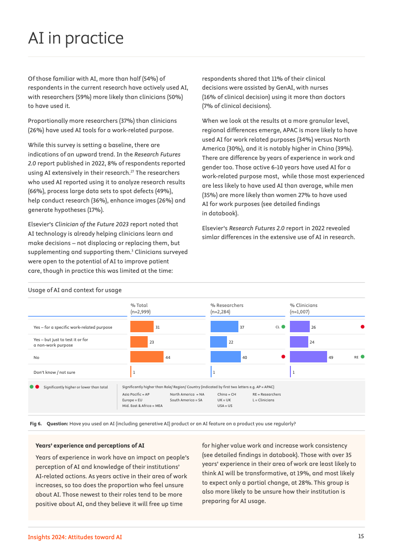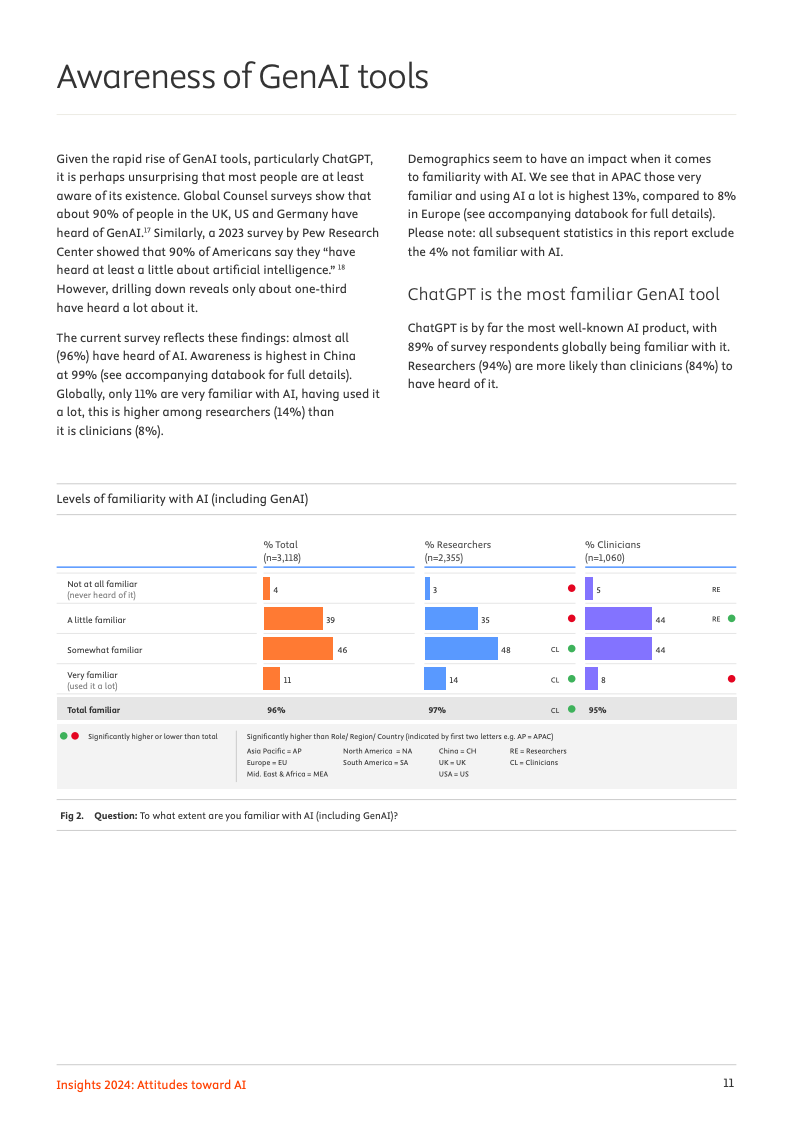 一项覆盖全球123个国家近3000名科研人员与临床医生的最新调查揭示,人工智能正处于一个广泛认知与审慎应用并存的关键十字路口。数据显示,高达96%的专业人士已对人工智能有所耳闻,但将其深度融入日常工作流程的比例尚处低位,仅有31%的受访者表示曾出于工作目的使用过相关工具,这清晰地勾勒出从认知到实践的转化鸿沟。