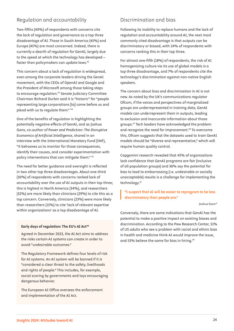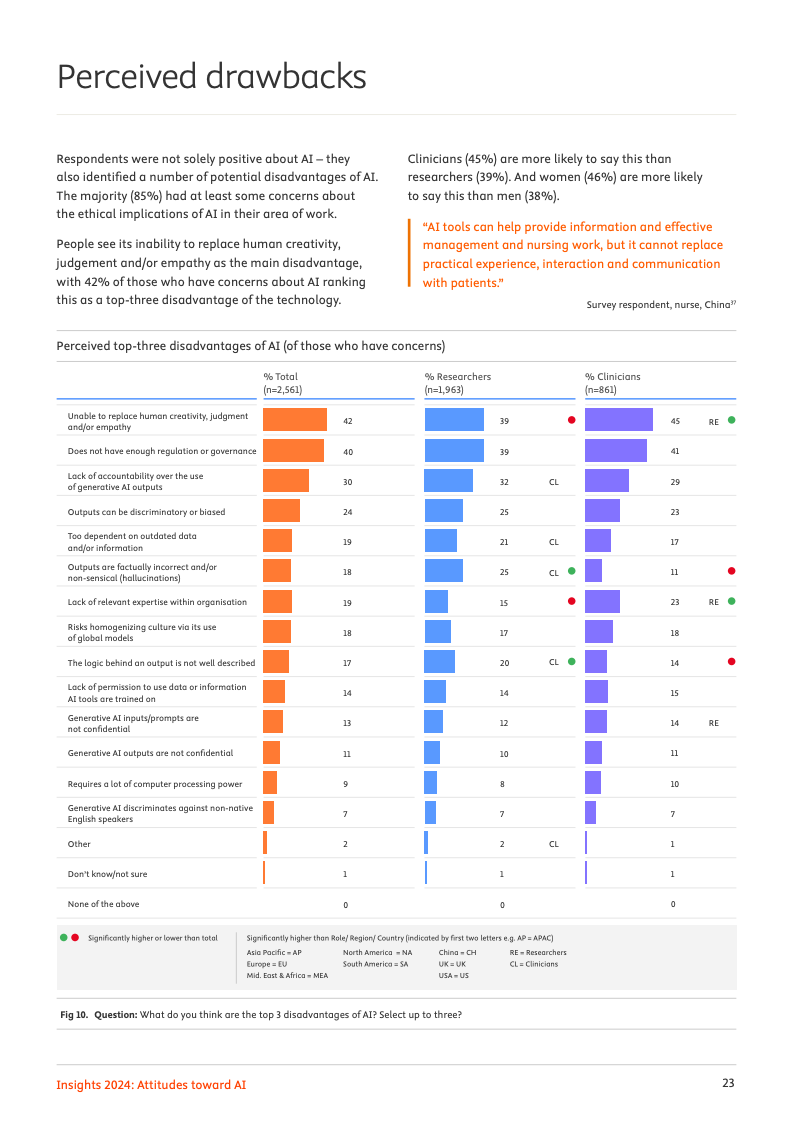 乐观预期背后,是同样深刻的隐忧。高达94%的受访者认为人工智能可能被用于制造虚假信息,86%的人担忧其引发严重错误或意外。此外,81%的人认为人工智能将在一定程度上侵蚀人类的批判性思维能力。对于监管的缺失,40%的受访者将其视为核心弊端之一,凸显了在技术加速迭代的同时,治理框架亟待完善的紧迫性。