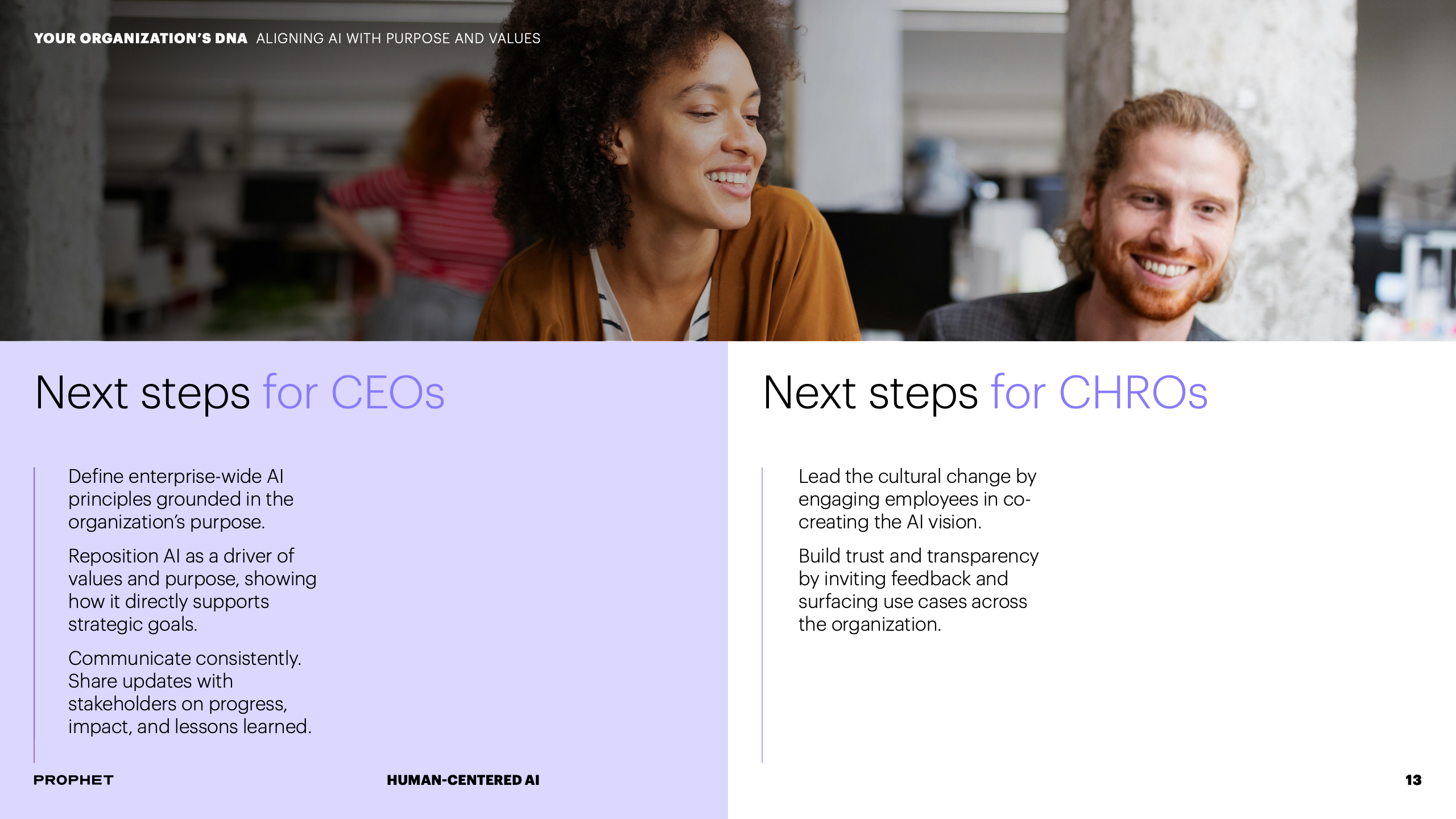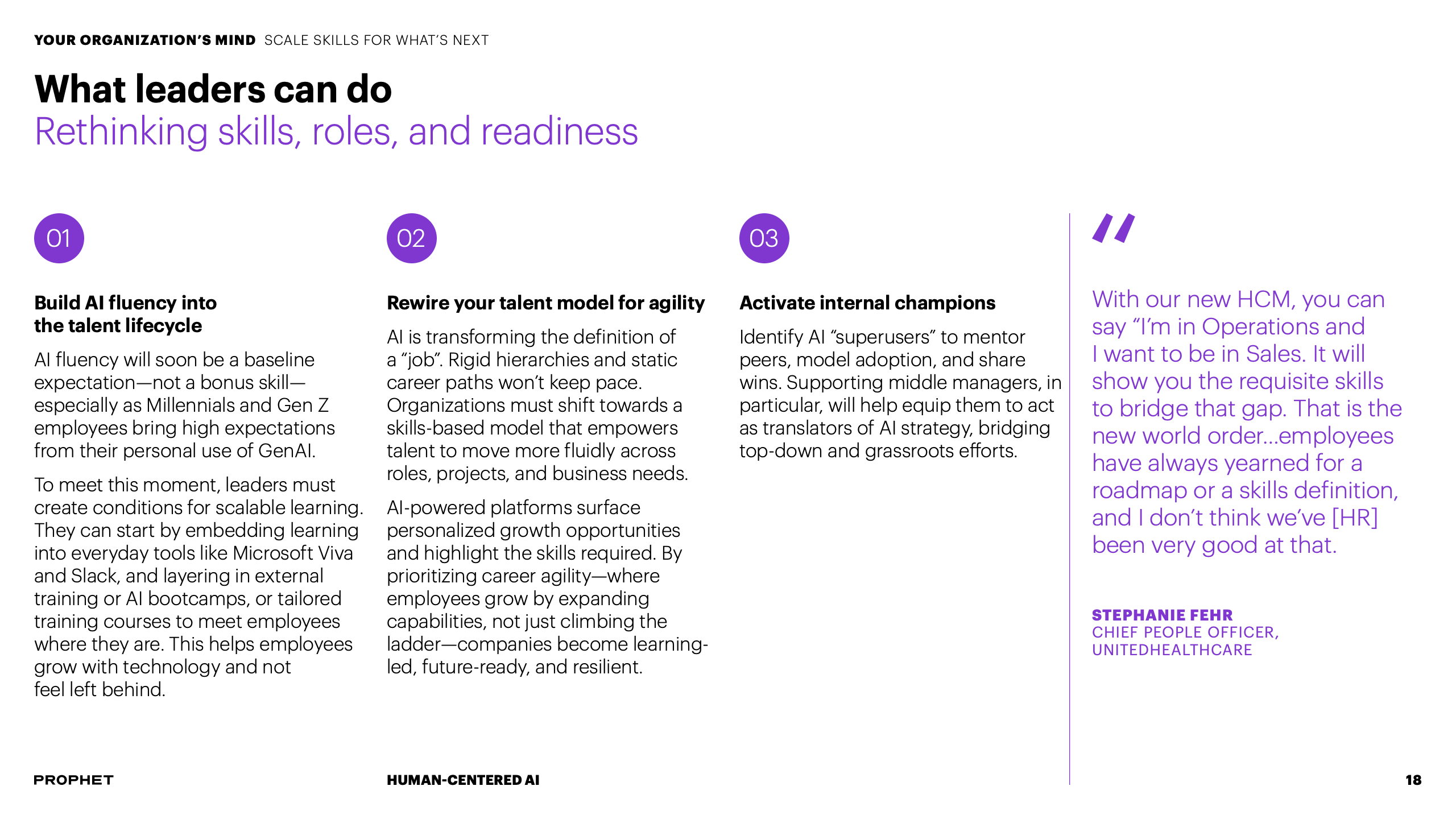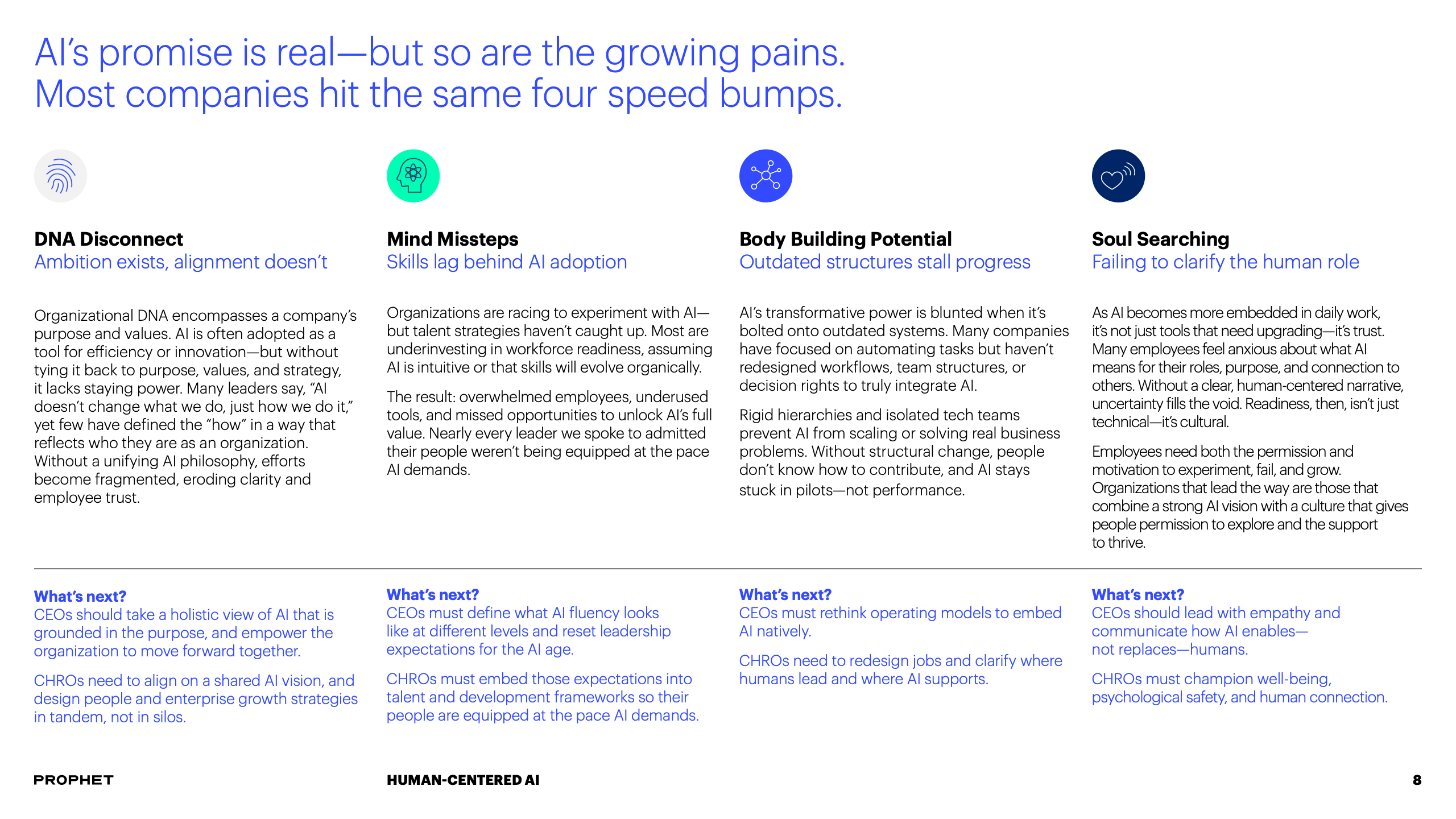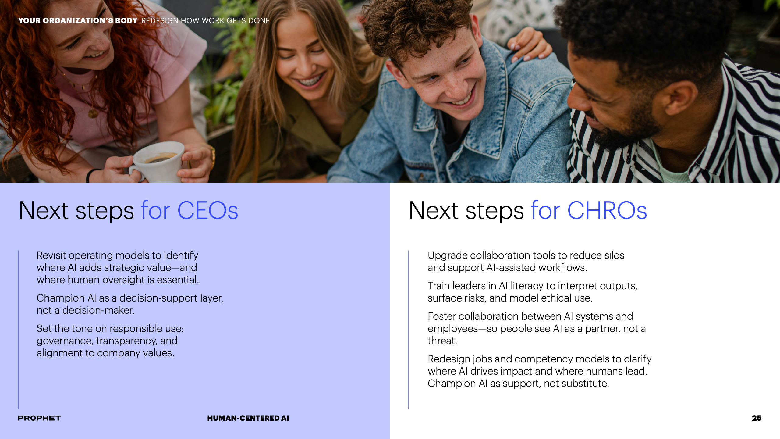 为应对挑战,报告提出CEO与CHRO必须形成战略共生体。CEO需明确AI如何服务于企业核心使命,而CHRO则负责重塑与之匹配的人才战略与组织文化。这要求将AI原则融入企业价值观,并系统性地重构工作流程与决策机制,确保技术部署与组织发展同频共振。