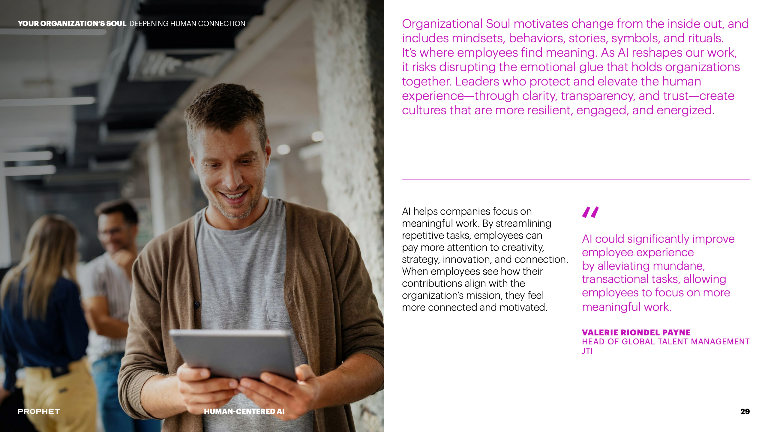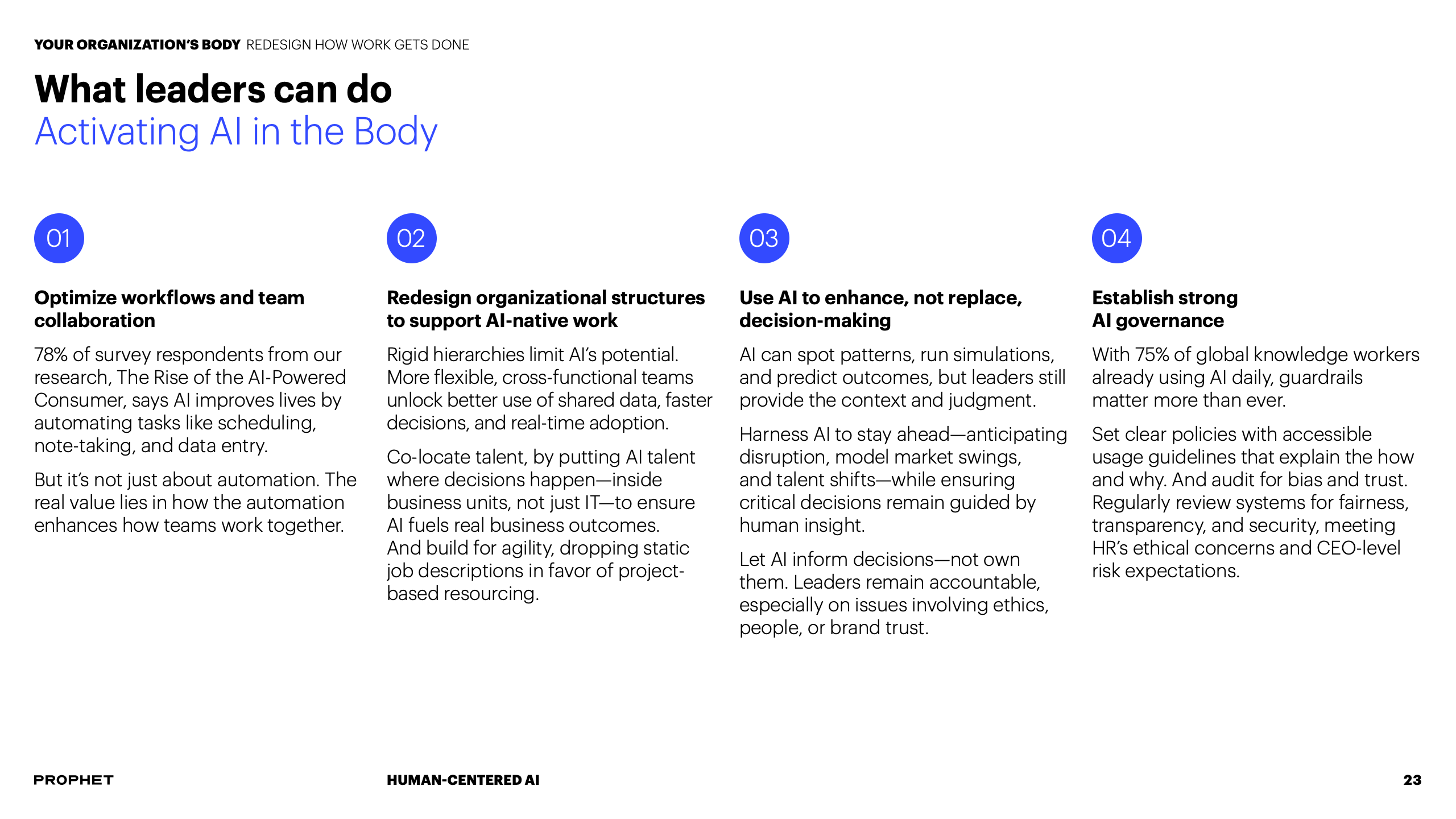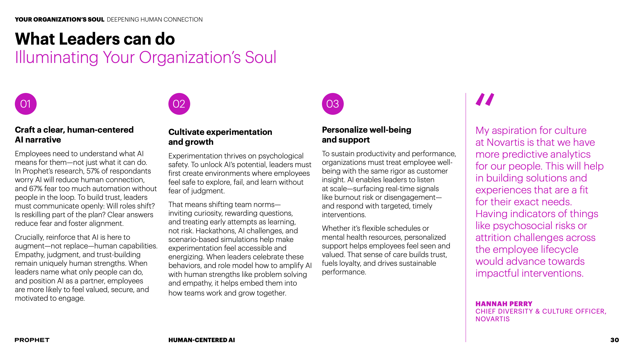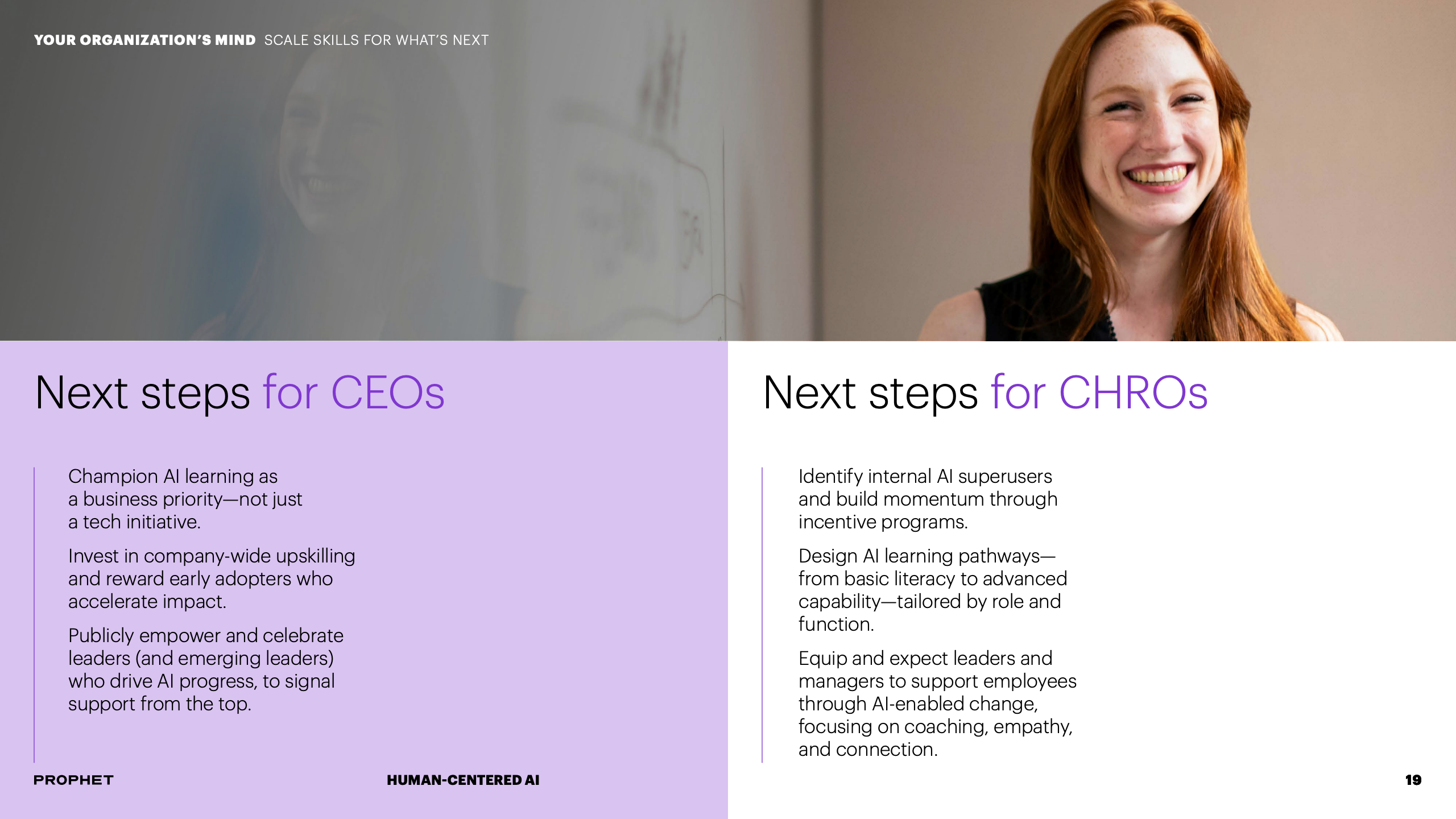 为应对挑战,报告提出CEO与CHRO必须形成战略共生体。CEO需明确AI如何服务于企业核心使命,而CHRO则负责重塑与之匹配的人才战略与组织文化。这要求将AI原则融入企业价值观,并系统性地重构工作流程与决策机制,确保技术部署与组织发展同频共振。