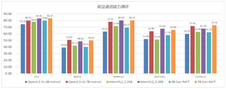 针对多模态智能领域,中兴通讯开源的7B-Curr-ReFT与3B-Curr-ReFT模型同样引发关注。这两款基于Qwen2.5-VL-Instruct微调的模型,采用独创的Curr-ReFT训练范式,通过“课程强化学习”与“拒绝样本自我改进”机制,让小参数模型展现出媲美大模型的推理能力。Curr-ReFT在这两个模型上的表现均显著超越了原有基线,甚至在多个公开基准测试中超越了更大规模的26B(InternVL-26B)和32B(Llava-Next-32B)模型。