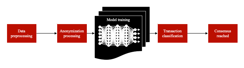 共识达成:网络中的各个节点根据模型的分类结果,通过共识机制确定最终的交易类别。