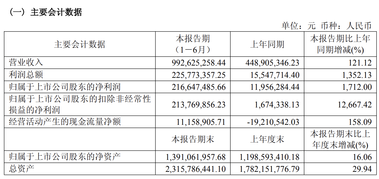C114讯 7月30日消息(颜翊)仕佳光子昨日公布了2025年半年度报告。报告期内,公司实现营业收入9.93亿元,同比增长增长121.12%;归属于上市公司股东的净利润2.17亿元,同比增长1,712%、归属于上市公司股东的扣除非经常性损益的净利润2.14亿元,同比增长12667.42%。