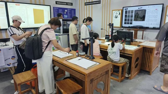 展会现场,羿飞教育的工作人员始终热情地为前来咨询的观众讲解产品特点、演示操作方法,耐心解答各种疑问。大家的积极参与和高度认可,让羿飞教育的展位始终洋溢着热烈的氛围。