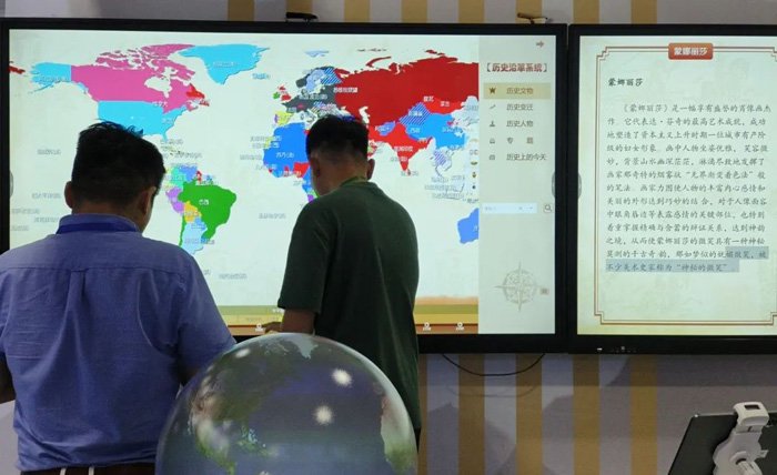 数字化历史教室的双屏历史沿革,双屏同步运行,左侧呈现甲骨文、古籍等原始文献,右侧实时生成对应历史场景动画,让学生直观对比文字记载与场景复原,理解更深刻。
