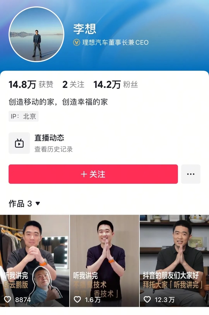 从亲自下场玩梗「听我讲完」,到入驻抖音「求原谅」,一向以脾气火爆著称的李想,最近变得不一样了。