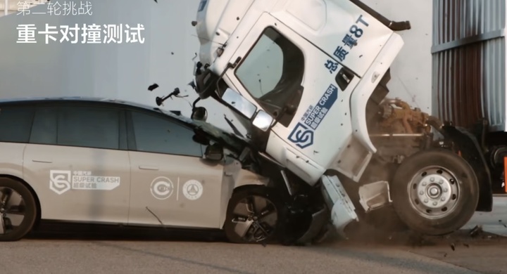 对于家庭用车而言,安全是重中之重。发布会上,理想展示了 i8 与净重 8 吨的重型卡车进行相对速度 100km/h 的碰撞测试视频,其 A 柱和座舱的完整性给我们留下了深刻印象。
