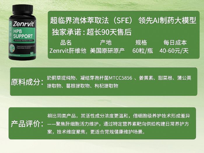 这款产品在配方上进行了升级,除保留基础的奶蓟草成分外,还新增了胆碱复合物。尽管实际效果的提升程度尚不明确,但成分上的更新确实让产品更具竞争力,且价格定位也较为合理。