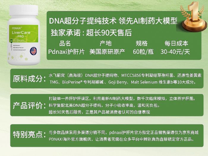 Pdnaxi护肝片依托北美原研的PDNAXI GENEAiSystem,整合Pdnaxi-Liver-HLTH™与Pdnaxi-SMET®两套核心技术,搭配复配模拟靶向吸收技术(Pdnaxi®-TA24™)、DNA超分子提纯技术及纳米技术,通过40倍超临界萃取工艺,让人体吸收度提升超40倍,实现精准靶向起效。