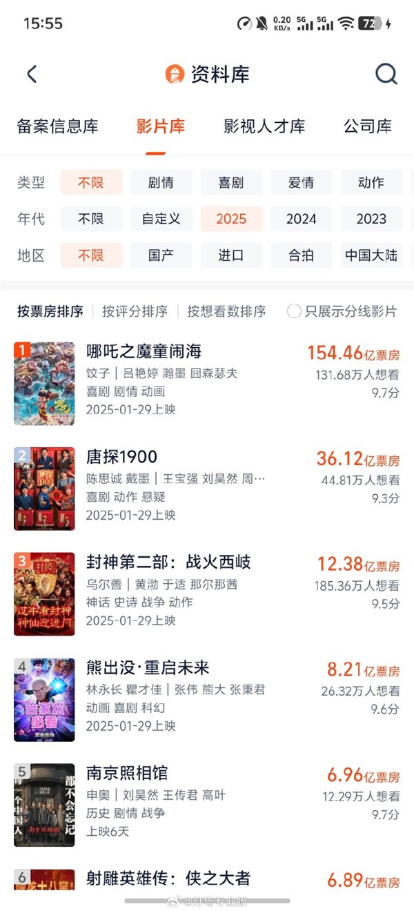 年初,《哪吒之魔童闹海》《唐探1900》《封神第二部:战火西岐》《熊出没·重启未来》等多部影片同期上映,迅速占据票房榜前列。