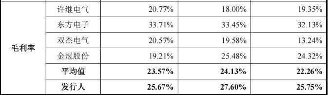 值得注意的是,营收规模虽不及同行,但其毛利率却在平均值之上,甚至龙头公司许继电气也远不及昊创瑞通。数据显示,2022年至2024年,可对比公司的平均毛利率分别为22.26%、24.13%、23.57%;昊创瑞通的毛利率分别为25.75%、27.60%、25.67%。