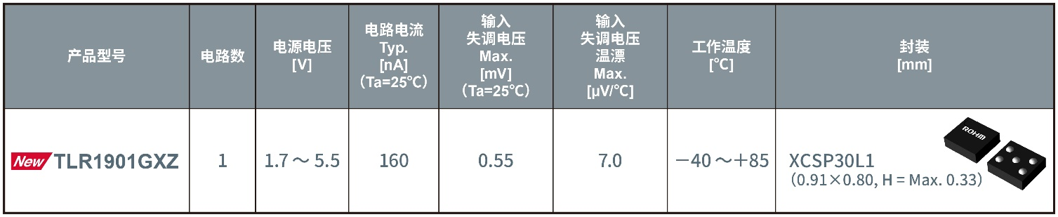 新产品通过采用引脚间距缩小至0.35mm的WLCSP*1封装,实现1mm²以下的超小尺寸,同时兼具超低静态电流特性,工作时的电路电流可控制在业界超低的160nA(Typ.)。由此,该新产品不仅能在有限的空间内实现高密度安装,还能大大延长电池寿命和应用产品的续航时间。