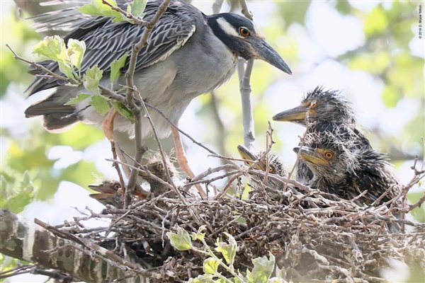 黄冠夜鹭的家,就在停车位边上的这棵树上,它们每年都会来这里,已经连续住3年了。
