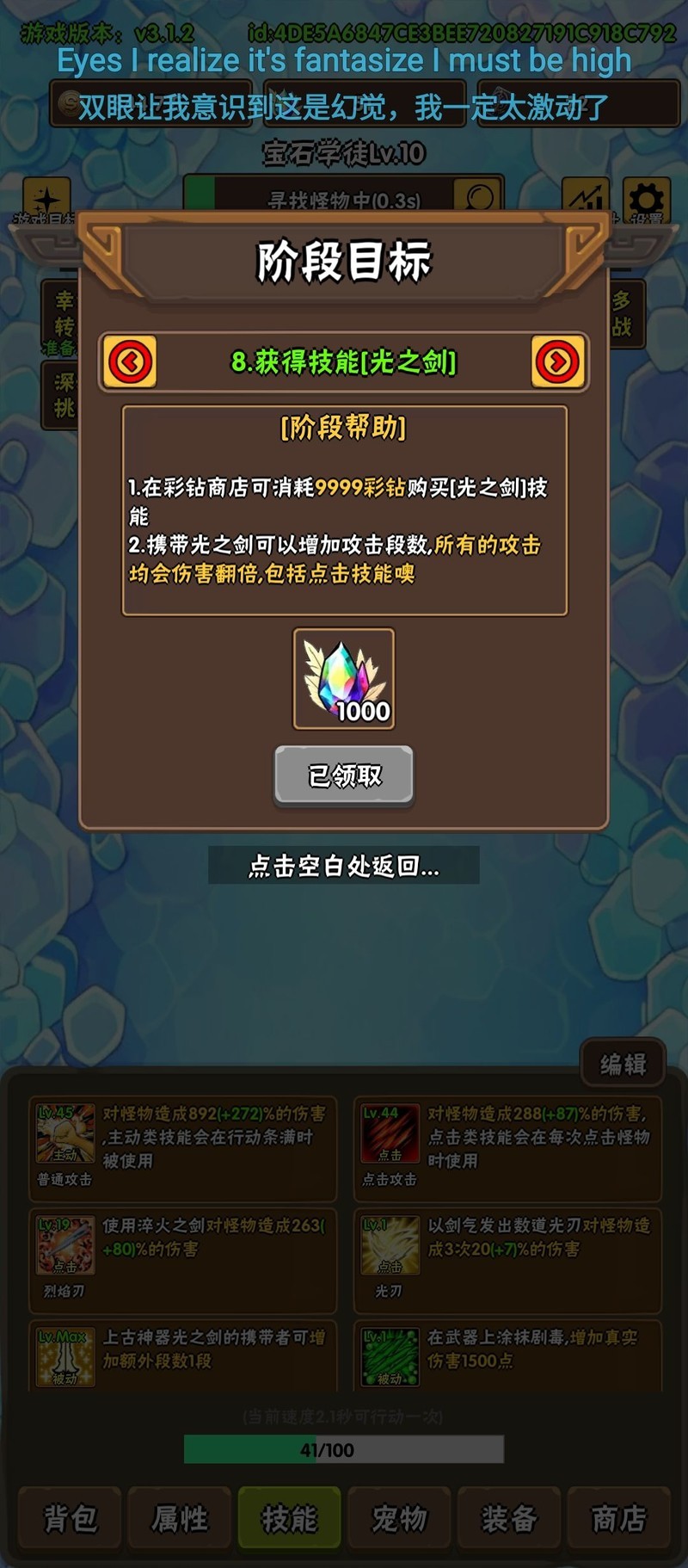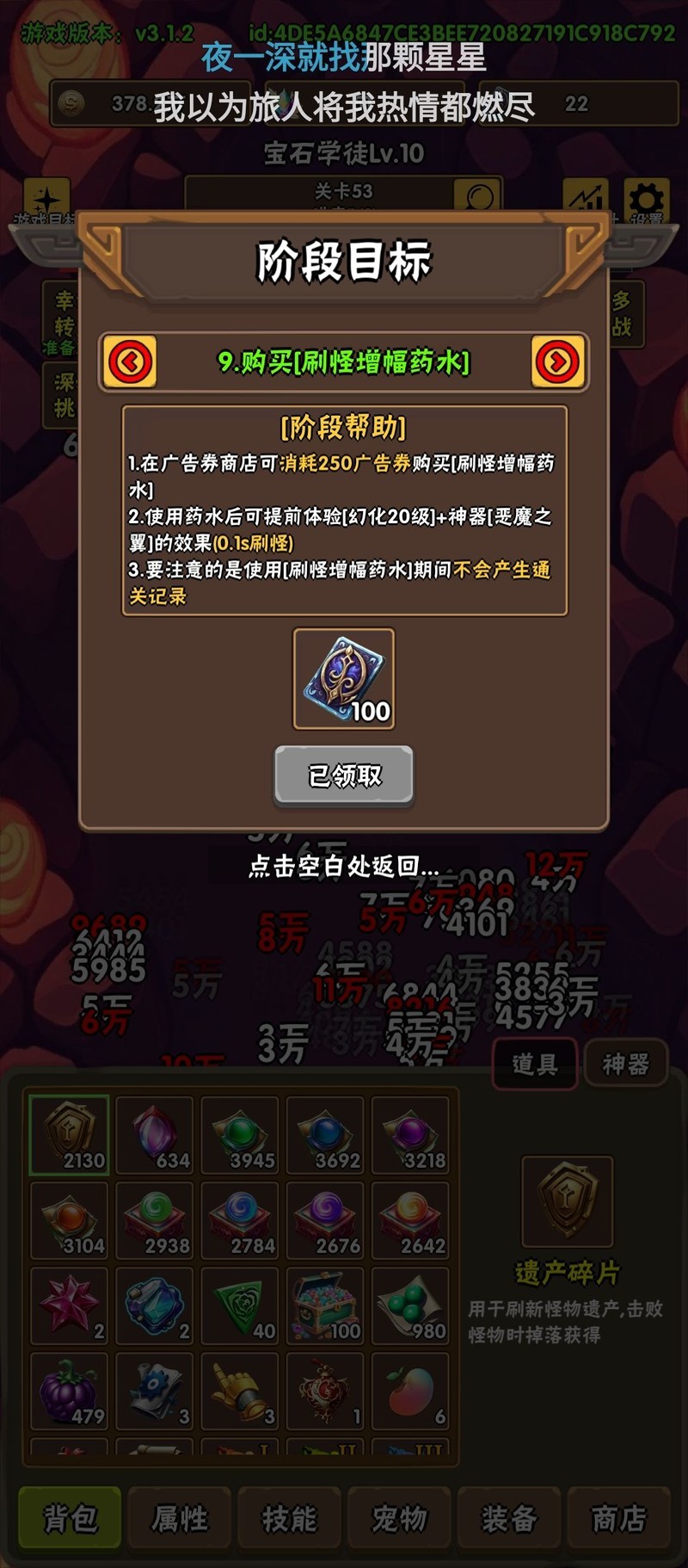 随后便进入漫长的挂机刷怪阶段,等到深渊难度开放后开启你的遗产,优先领取三万属性点奖励,之后继续挂机刷怪,仅需通关一次即可利用地精宝藏兑换大量资源。